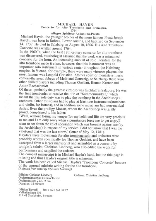 M. Haydn / C. Lindberg: Concerto for Alto Trombone