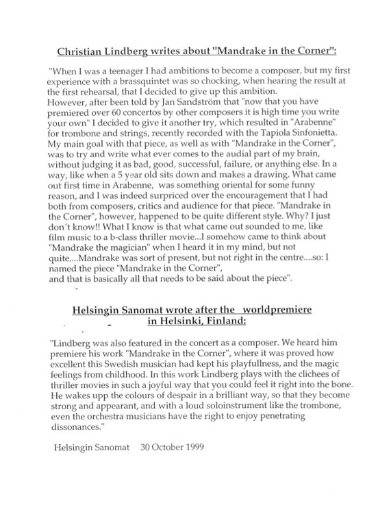 Christian Lindberg: Mandrake in the Corner - Trombone & Symphony orchestra