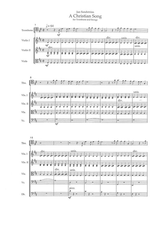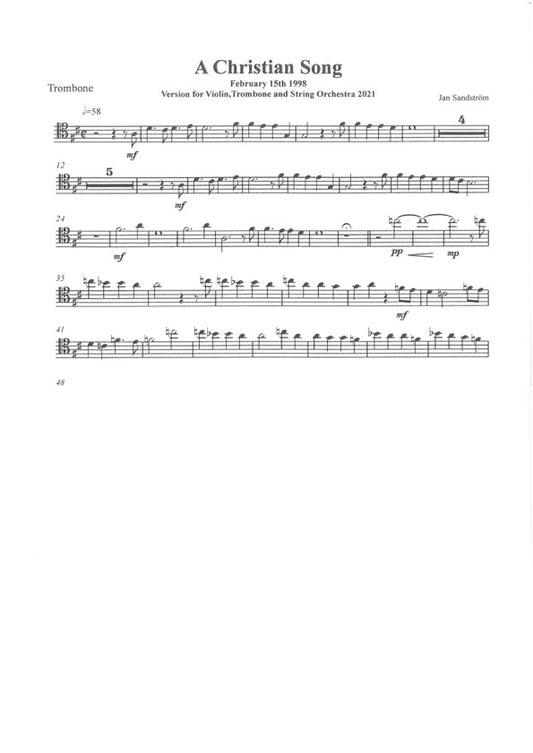 Jan Sandström: A Christian Song - for Violin, Trombone & String orchestra