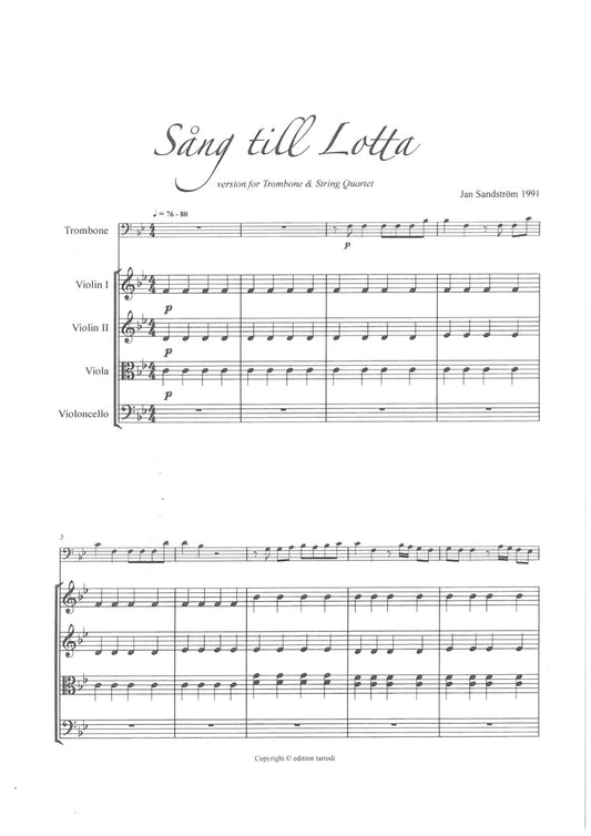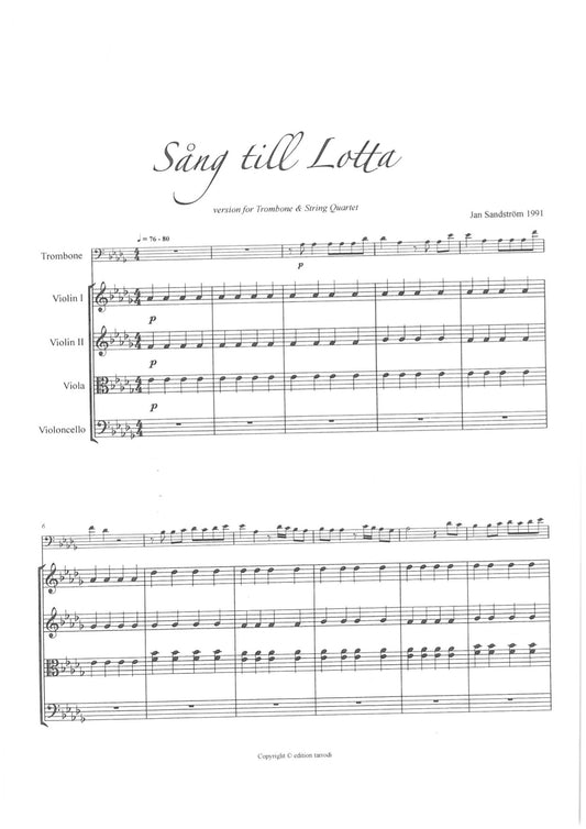 Jan Sandström - Song to Lotta in Bb, Trombone & String Quartet